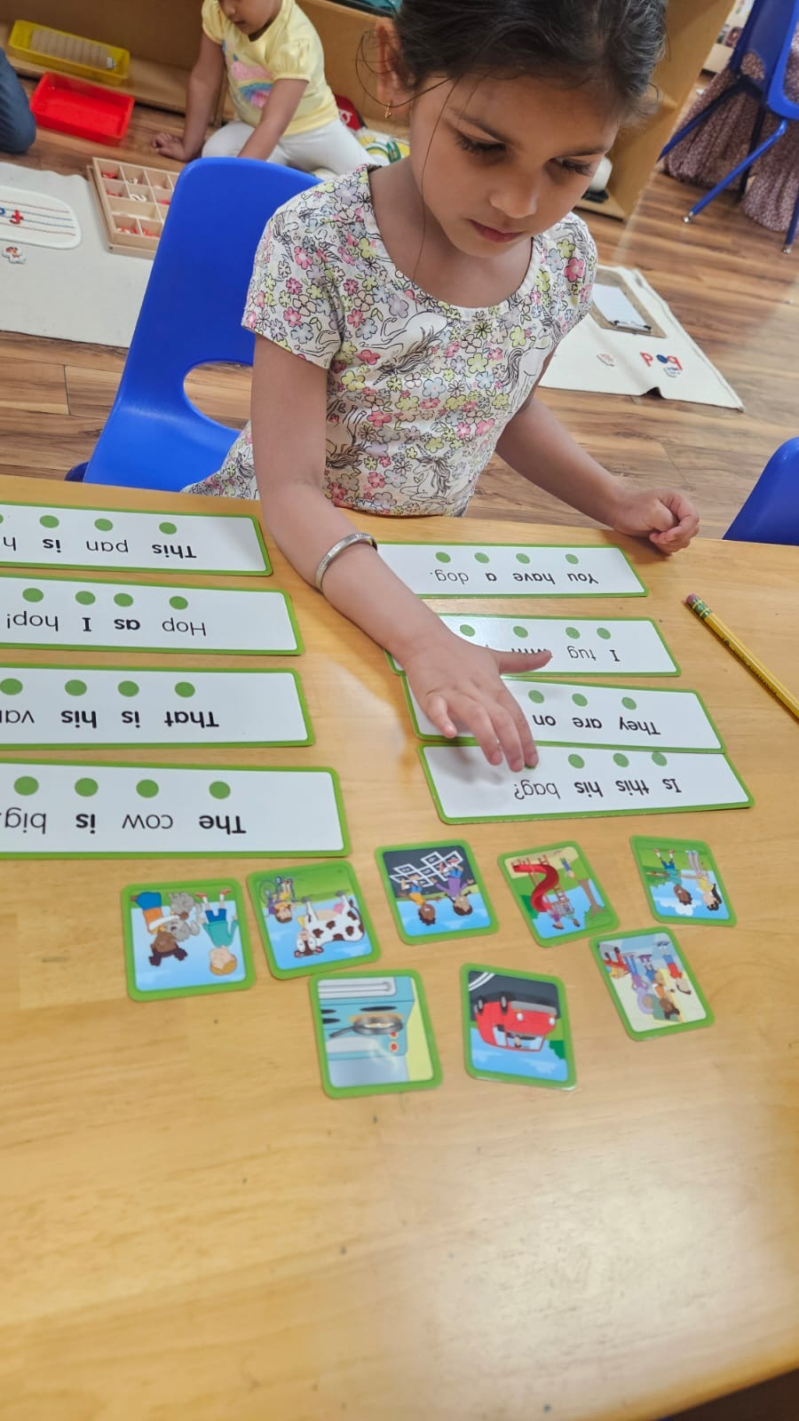 The curriculum is excellent—very balanced and thoughtfully designed. She has progressed beautifully in math and language, and it’s amazing to see how much she enjoys learning. The teachers truly understand each child’s pace and guide them with so much patience and care.
