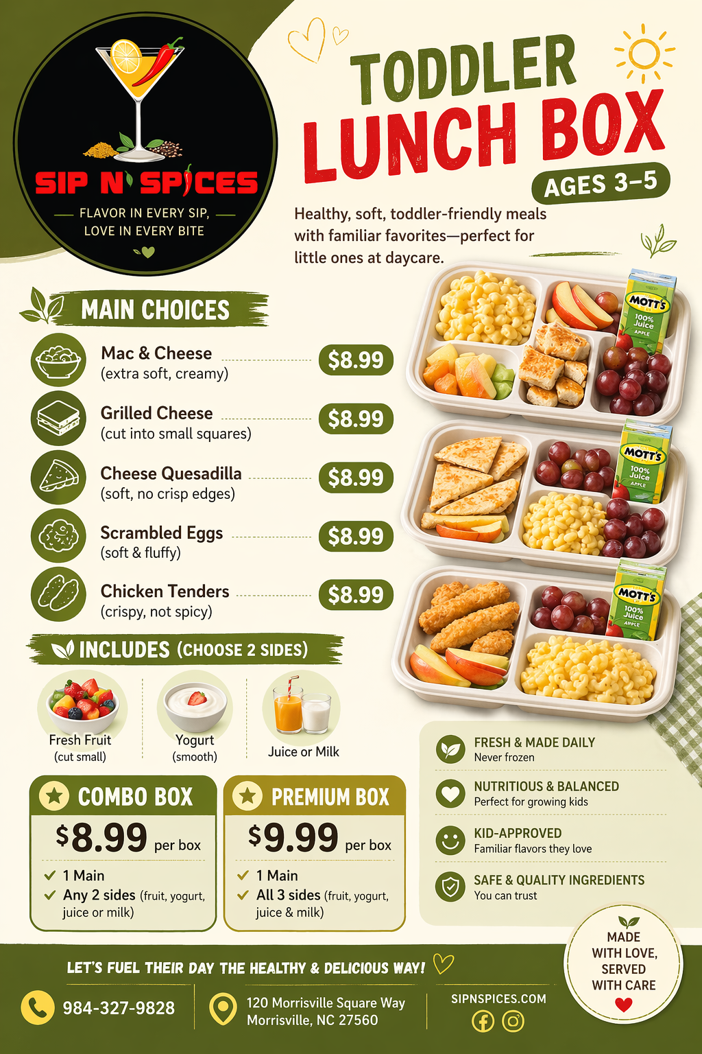 | 3 half days/week(Monday, Wednesday, Friday) | $440/month |